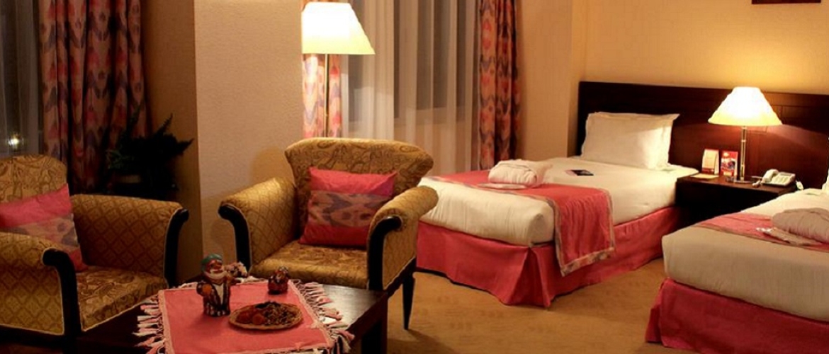 Добро пожаловать в отель "Узбекистан"! Мы очень рады приветствовать вас в нашем отеле, расположенном в самом центре Ташкента, и хотим предложить вам незабываемый опыт восточного гостеприимства. Наш отель предлагает уютные номера с кондиционером и телевизором, чтобы обеспечить вам комфортное проживание. Вы сможете насладиться своим пребыванием в классически меблированных номерах или люксах с интерьером, оформленным при помощи темной деревянной мебели и элегантных тканей.